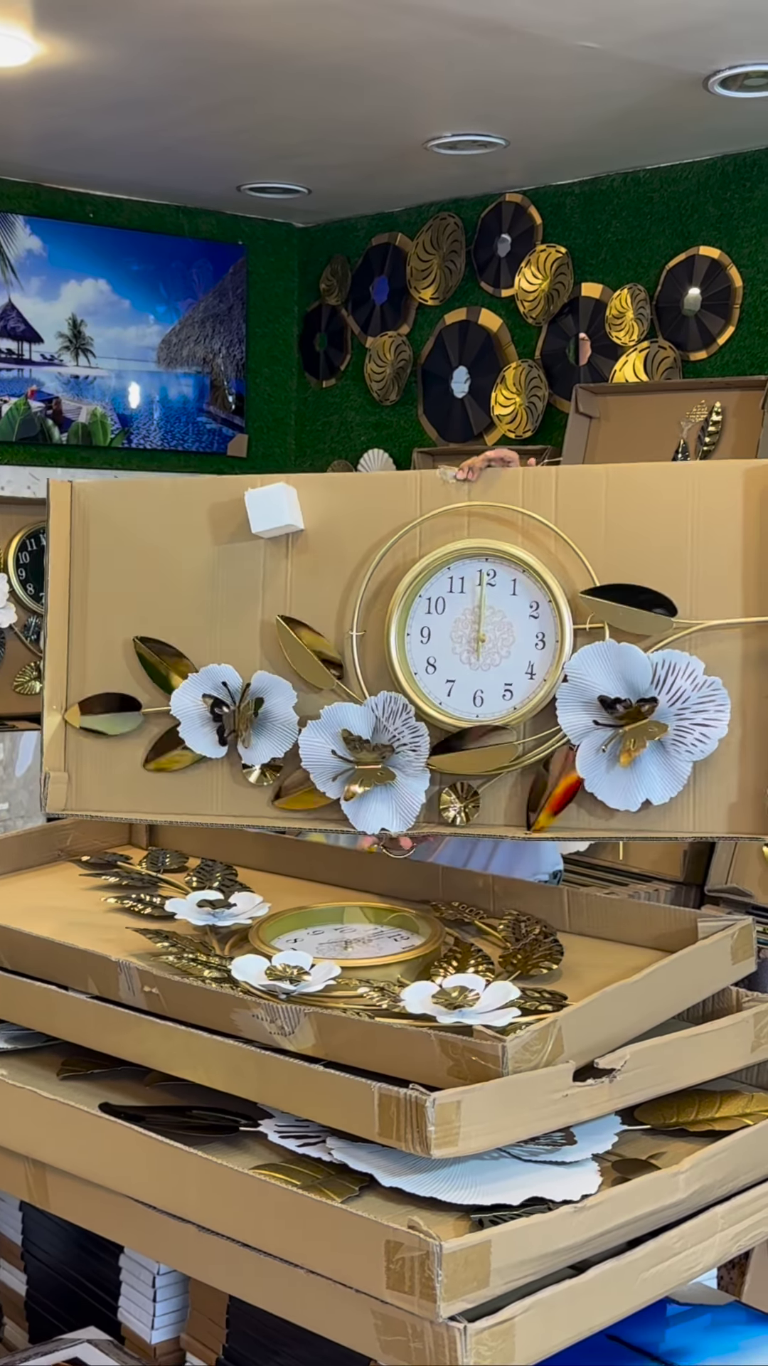 Sculptural Brilliance: Our 2026 Large Floral Wall Clocks feature intricate, hand-crafted metal petals and shimmering gold-tone leaves that frame a sophisticated black-and-gold dial.