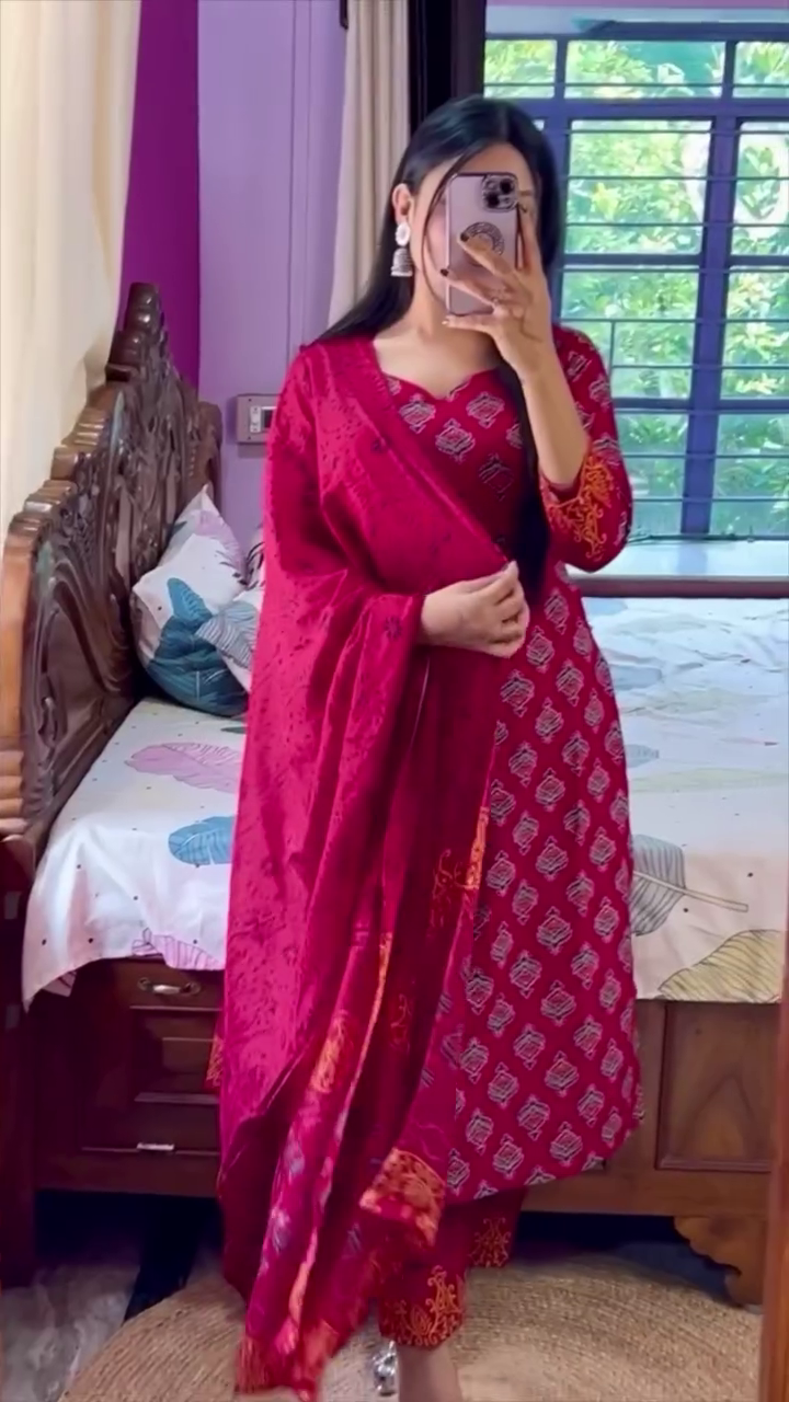 The set is accompanied by a coordinated bottle green dupatta made of lightweight georgette. The dupatta features scattered floral motifs and a finished border that mirrors the design on the kurta. This set is designed to be paired with matching straight pants or leggings for a complete and polished appearance. The bottle green color is particularly suitable for evening events, winter weddings, or formal religious ceremonies.