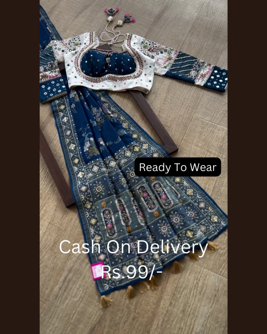 ✔️ Boutique Quality: Displayed on a professional wooden flooring surface, emphasizing its status as a premium, curated festive garment.