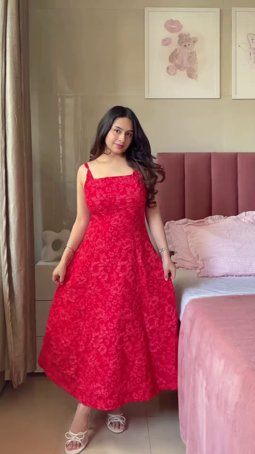 Crafted from lightweight, breathable fabric, the dress ensures comfort throughout the day. The material appears soft to the touch, with a gentle drape that complements the floral print and flared silhouette. It’s ideal for indoor wear, outdoor events, or travel styling.